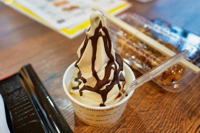 下山以後看到1間小吃店 生意很好 有賣熱的也有賣冰淇淋