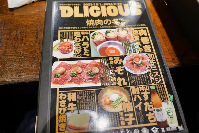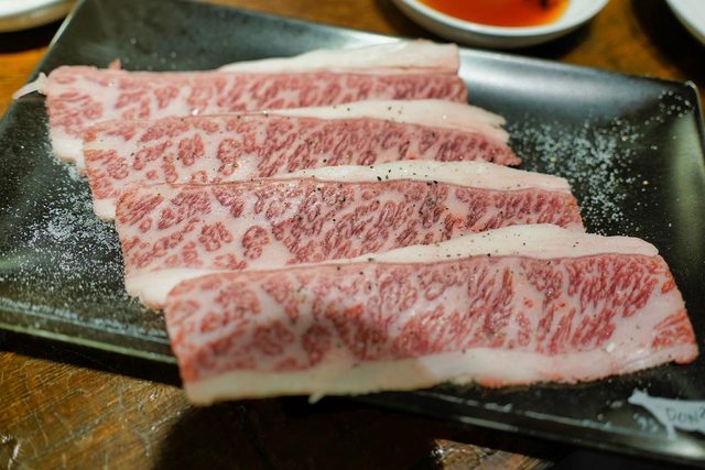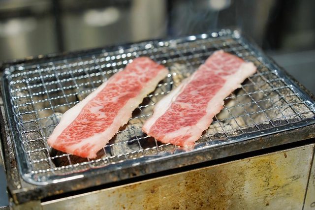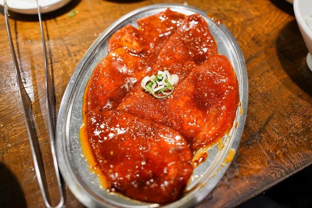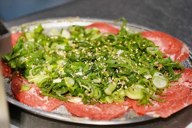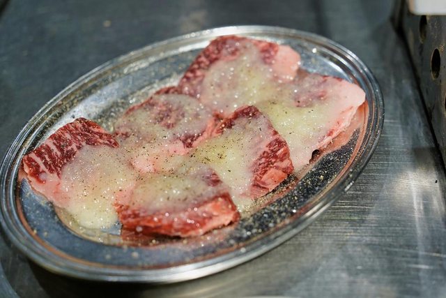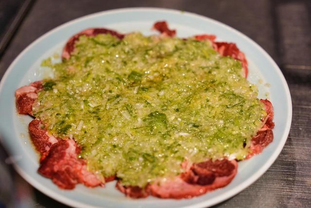 招牌的蔥花牛舌 看menu介紹烤一邊就好 隔壁的日本女生也是只烤一邊 但我還是想要吃熟一點的XD 結果店員又一直在看我們了XD 吃個燒肉不要給我們那麼大壓力好嗎XDDD