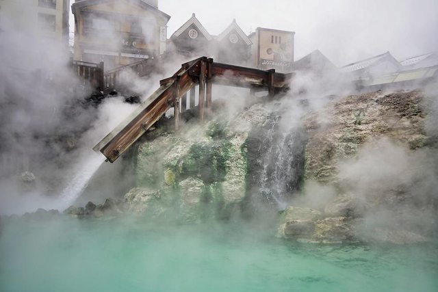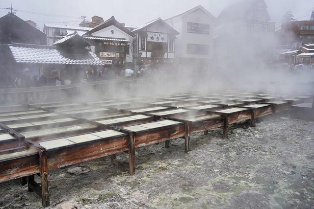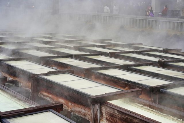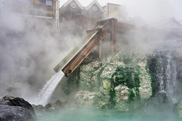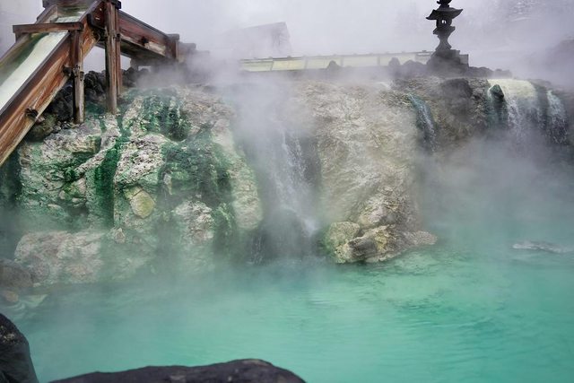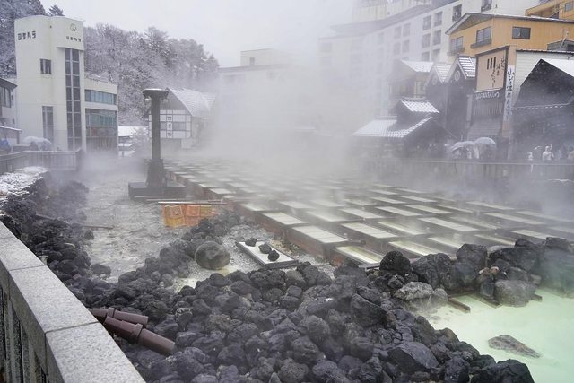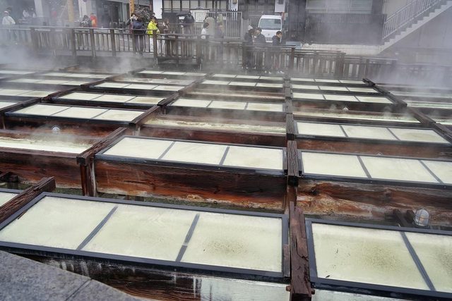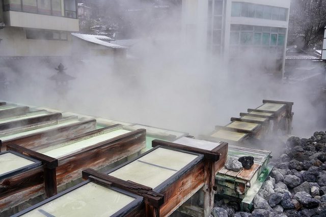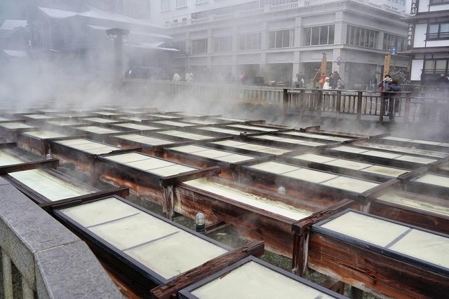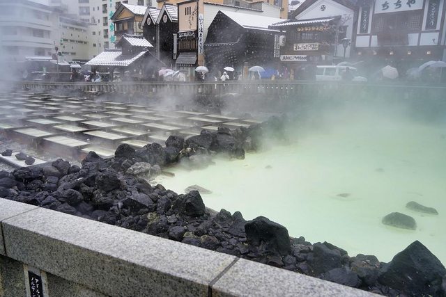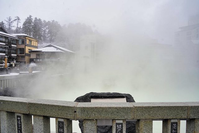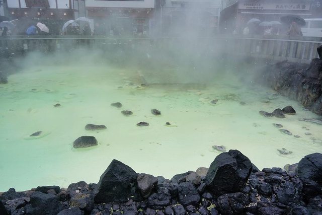 湯畑 我終於來到了朝思暮想的地方 草津溫泉也是日本三大名泉之首 被稱為第一名泉 有馬溫泉也去過了 剩下呂溫泉了 煙很大硫磺味很重
