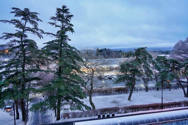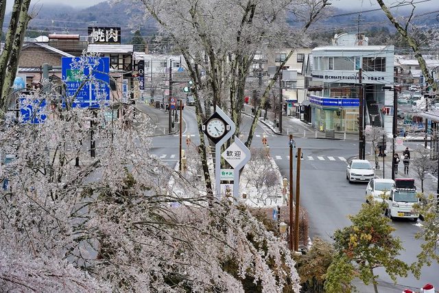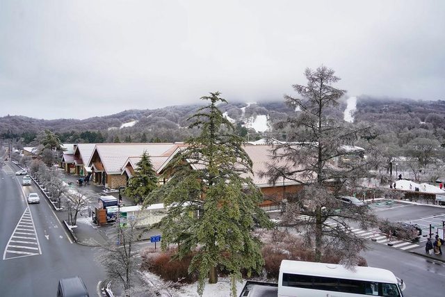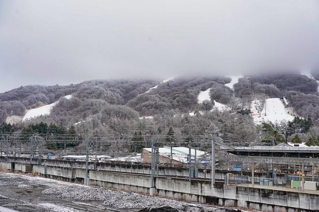 到了巴士站以後大約下午2點50分 看到有臺巴士在那 我們以為是下午3點20分的提早來等人 沒想到我們上車以後車子就直接出發了 才知道是下午2點40分的誤點到2點50分出發 都沒等到車也算幸運 回程路上起大霧 前方幾乎看不太到 再次佩服司機 下午4點10分回到輕井澤駅 路邊樹枝都結冰了