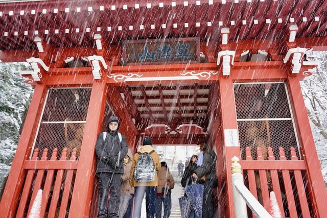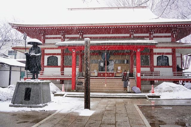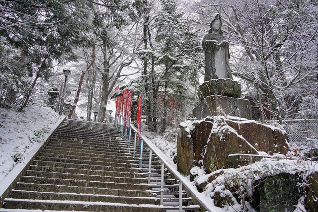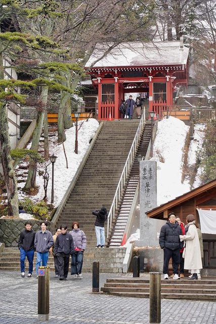 往光泉寺樓梯的雪已經融了