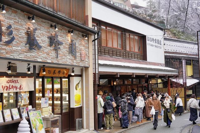 湯畑旁的店家