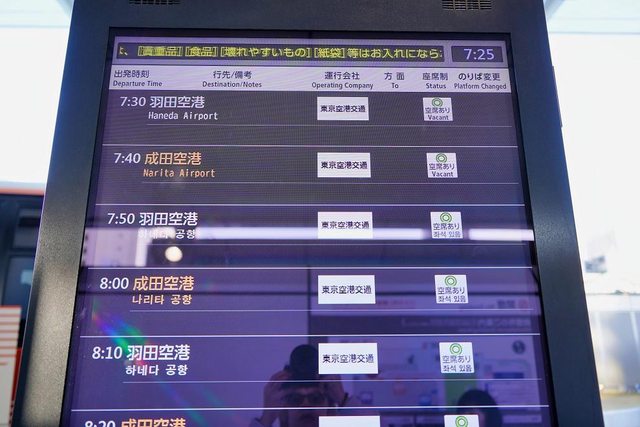 表訂上午9點15分到成田空港2航廈的利木津巴士