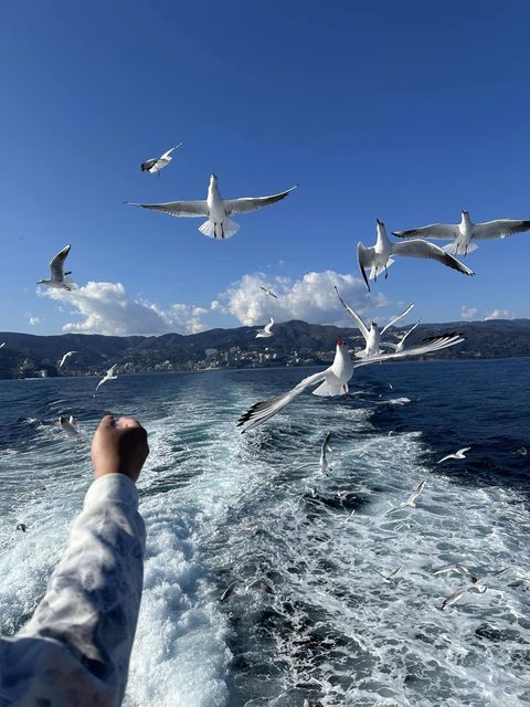 在船上餵海鷗,很有趣 之後就移動到明天河津櫻附近的飯店住宿 Day 5: 上午走河津櫻-->修善寺-->傍晚去御殿場高原時之栖看燈 河津櫻大概是七八成開 https://i.imgur.com/bpYjDSZ.jpeg