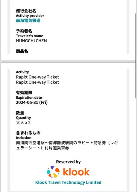 標題[讓售] 南海電鐵 特急Rapi:t車票