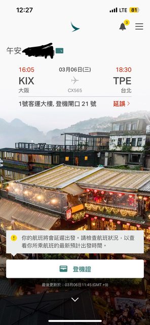 pdself : cx564 延到15:50,家人遇到了 03/06 15:33
