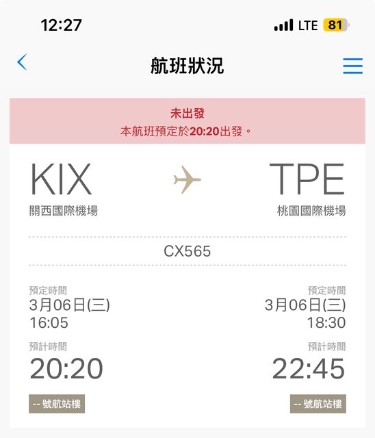 carava : 這是國泰日常,只要飛機從香港出發延誤,後面就整串 03/06 13:05