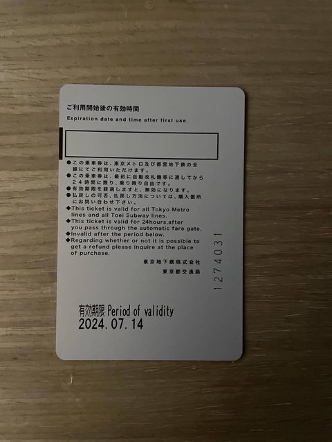 標題[讓售] 東京地鐵一日券(24hr)x1張