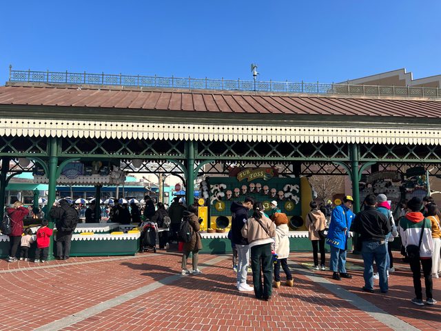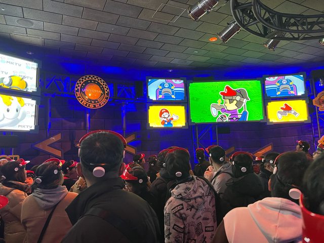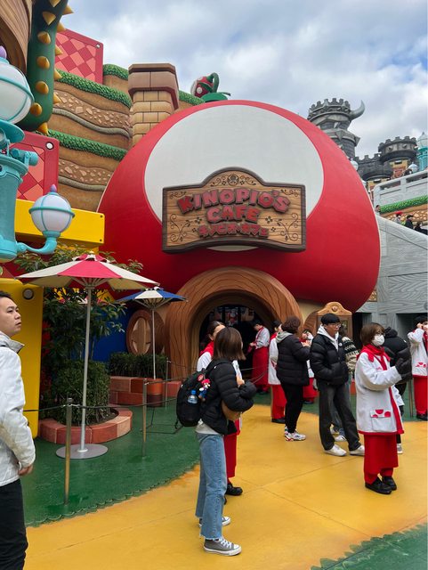 入園直奔瑪莉歐園區,庫巴(排15分)跟耀西(排10分)兩個都玩一次, 然後就陪朋友排爆米花桶,之後就進奇諾比奧餐 廳(排40分)吃午餐。