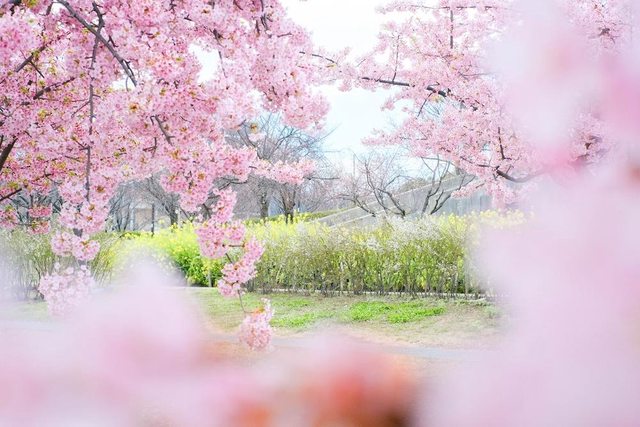 # 都市中心的浪漫「西鄉川河口公園」,圍繞著池畔綻放河津櫻
