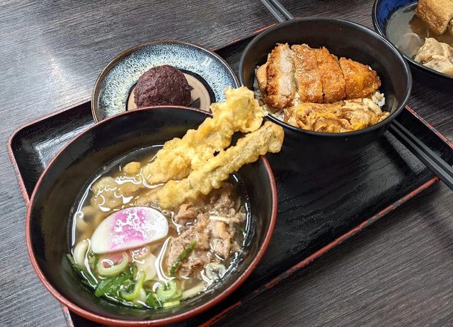 肉牛蒡烏龍麵+迷你豬排丼1160円日幣
