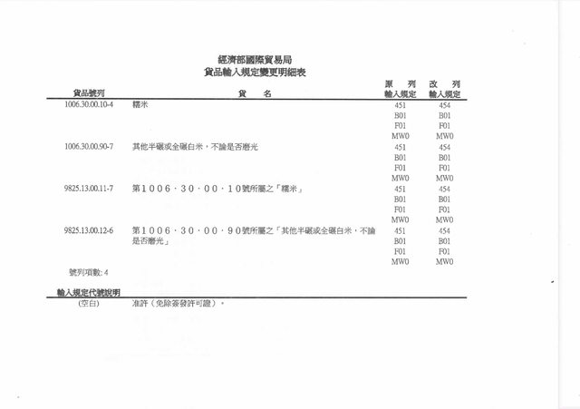 : 1~6kg的食用白米,只需要國貿局許可