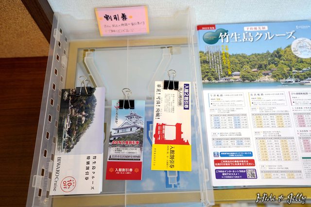 桌面上有「曳山博物館」、「長浜城歷史博物館」(長浜城天守)、「竹生島客船」的割引