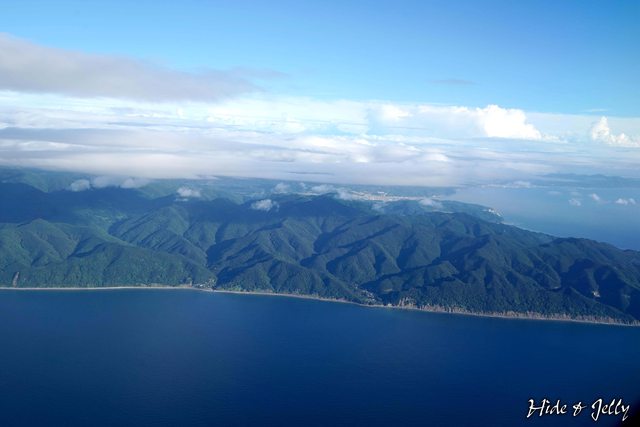 日出後窗外的強光給亮醒。往窗外一看,看到這群山邊的海岸線,馬上就認出來了,這是