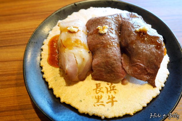 接下來就是主役-近江牛五花與橫膈膜拼盤,店家已先行調味過,不需要再使用任何沾醬
