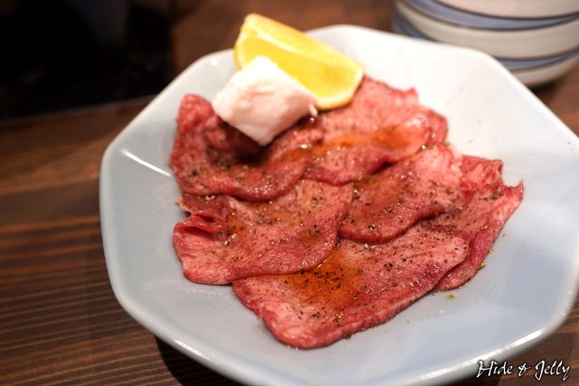 我們奉行著燒肉有牛舌必點的信條,當然看到牛舌一定來一盤囉。盤中還有好大一塊的牛