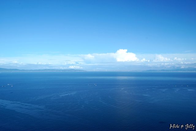 過沒多久,看到了湛藍海洋中央的大橋,那應該是鳴門大橋了吧,右邊的陸地則是淡路島