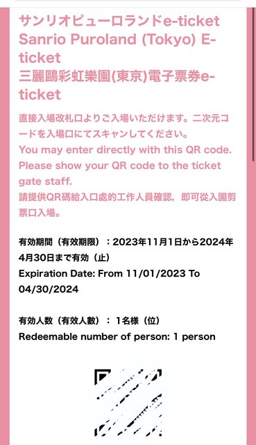 標題[讓售] 東京三麗鷗彩虹樂園 電子門票