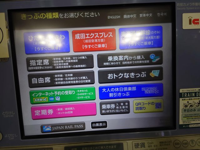 指定席券売機---------現金、交通系IC、信用卡