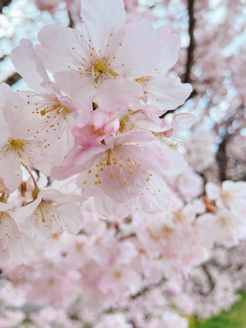 這個品種的櫻花比較矮,倒是蠻方便拍照。花是一球一球的開,好像是比較偏新的品種。