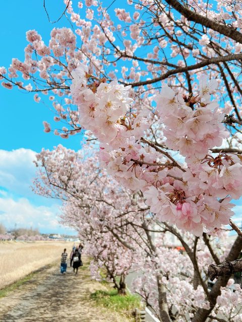 大約走五分鐘可以到達狩川,馬上就是兩排的櫻花。