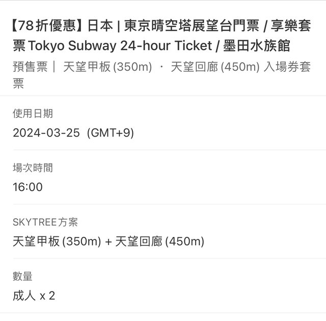 標題[讓售] 晴空塔門票(天望甲板+天望迴廊)