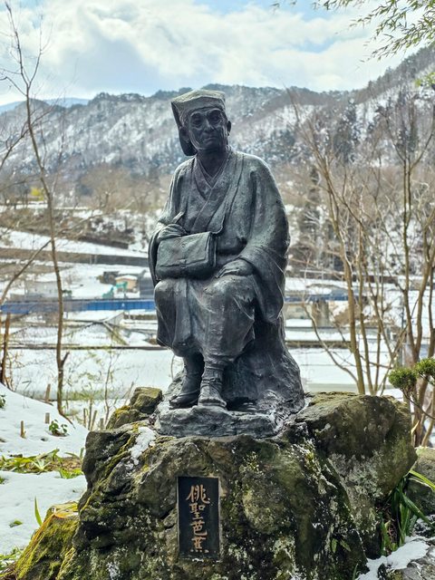有兩尊雕像,紀念追求風雅、漂泊一生的俳諧師 松尾芭蕉