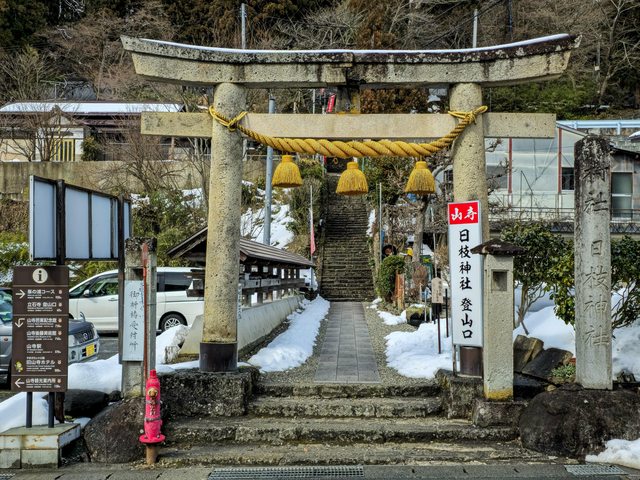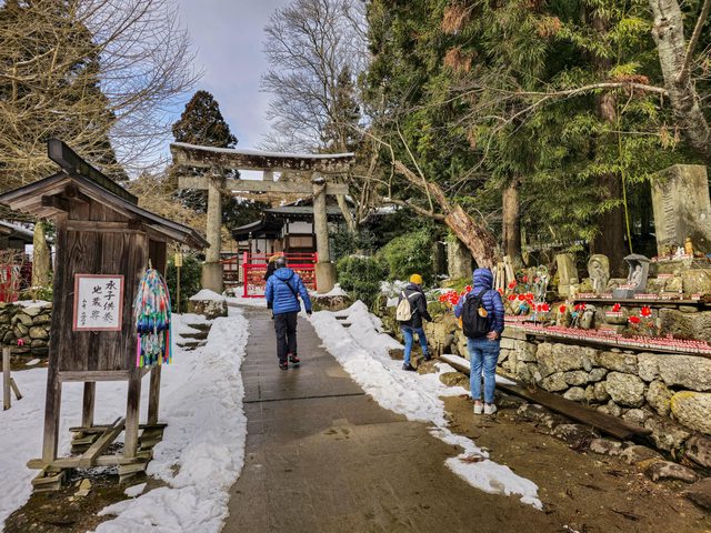 他們的蕎麥麵很讚,一吃就知道跟一般蕎麥麵店的不一樣 吃完雪也幾乎停了,回車站附近,日枝神社的登山口