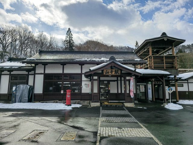乘坐JR到山寺站,行李就寄放在車站置物櫃