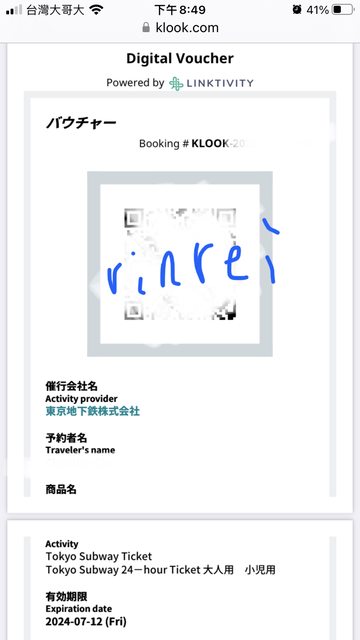 標題[讓售] 東京地鐵24小時一日券3張