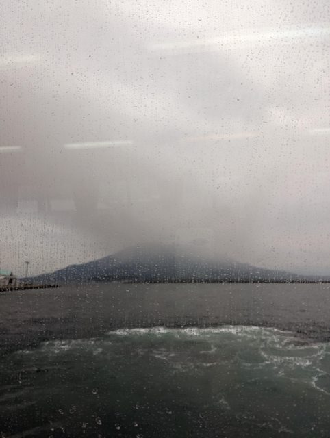 可惜天氣不佳櫻島被雲霧籠罩無法一窺全貌,不然應該是十分壯麗的景色。我們搭的這班
