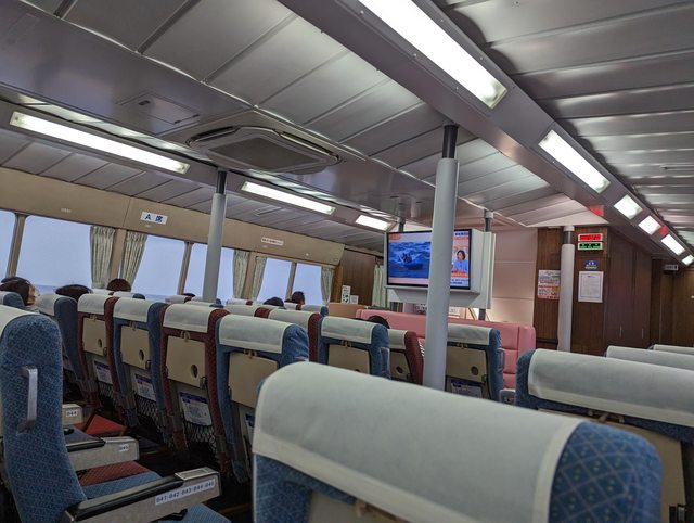 船中途有停靠種子島。在船上可以看電視,雖然不太懂日文但光看畫面也看得津津有味,