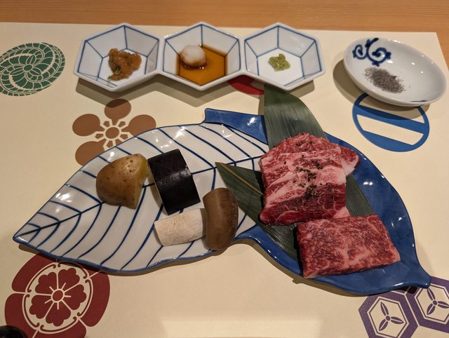 連泊的晚餐主菜換成黑毛和牛石燒,燉煮的料理メバル查了半天,看起來似乎是石狗公?