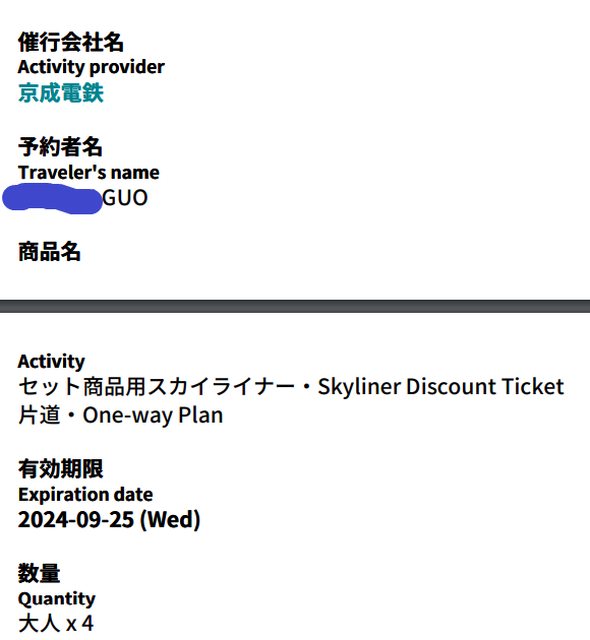 標題[讓售] Skyliner單程+東京地鐵通票24H