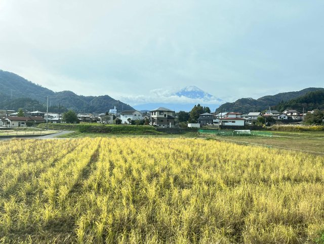 懷著忐忑不安的心情,搭乘富士洄游往河口湖出發,在即將抵達之際,出現了!是富士山,