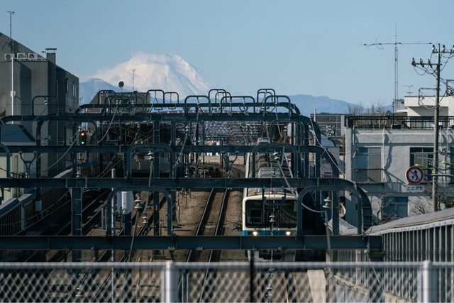 谷代田站出站後往前走一小段路,在代田富士365廣場可以看到富士山與電車的共演
