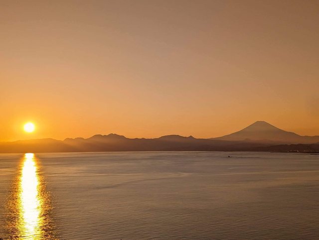 就走到江之島海蠟燭頂層上看夕陽落下的富士山