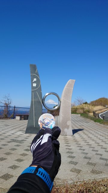 (學小熊騎上須走口五合目途中、江之島七里濱遠眺富士山)