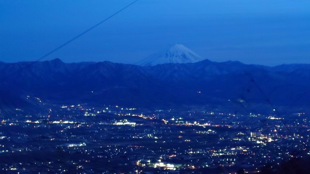 泡完溫泉下山途中拍的甲府夜景+富士山