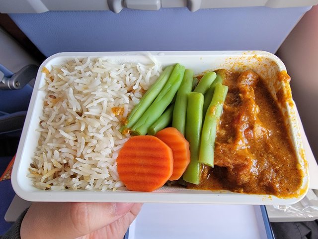 每次去程都有預訂特別餐習慣,這次訂回教餐來試試,主餐是雞肉咖哩,咖哩非常好吃,