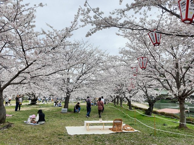 去的時候剛好有點陰天但不減錦帶橋配上櫻花之美