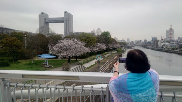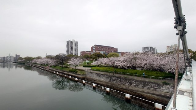 旁邊的堀川沿岸、熱田白鳥公園櫻花正滿開