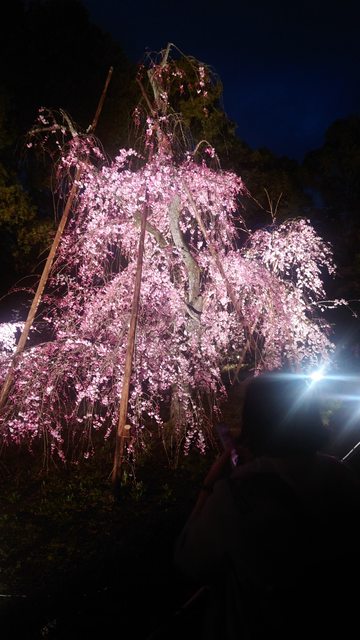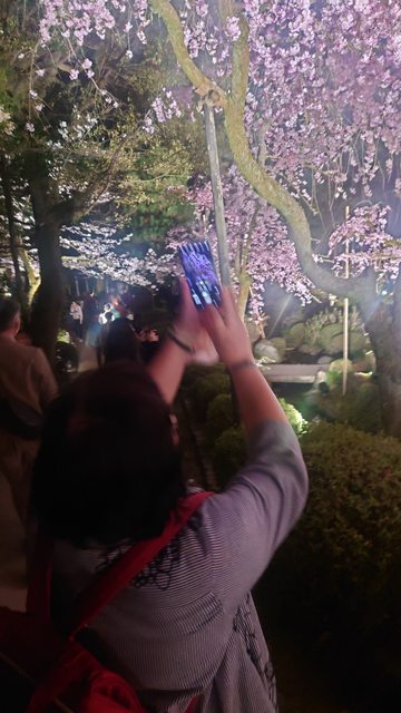 直說看到不同種的花(枝垂櫻)加上點燈氣氛很特別