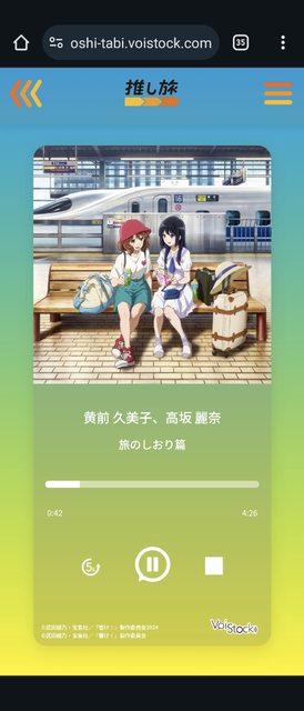 到一定速度才能播放,內容是主角搭新幹線旅行的閒聊