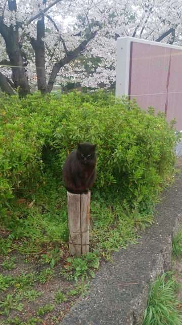 名城公園おふけ池的櫻花、跟眼神煞氣的浪貓