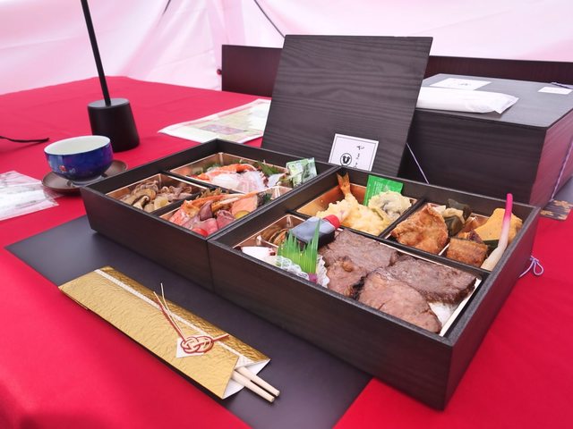 內容物有和牛、鰻魚、生魚片、螃蟹,各種日式小菜