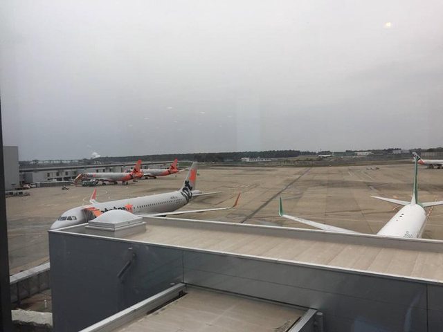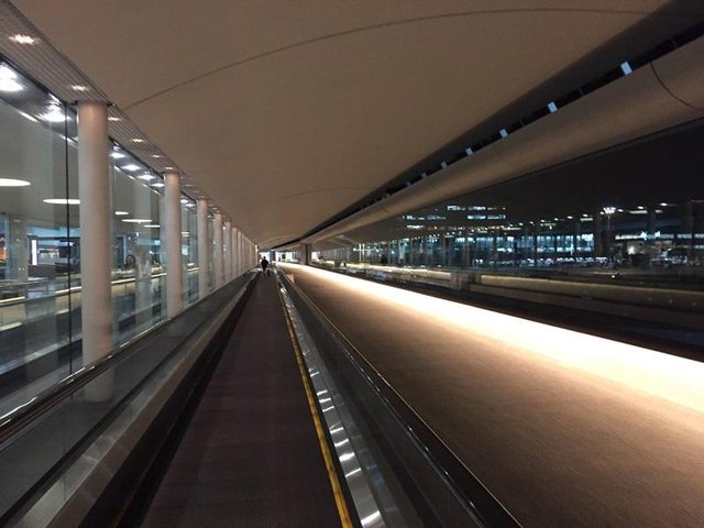 因為又沒睡好,所以乾脆搭第一班4點50分的接駁車前往機場,