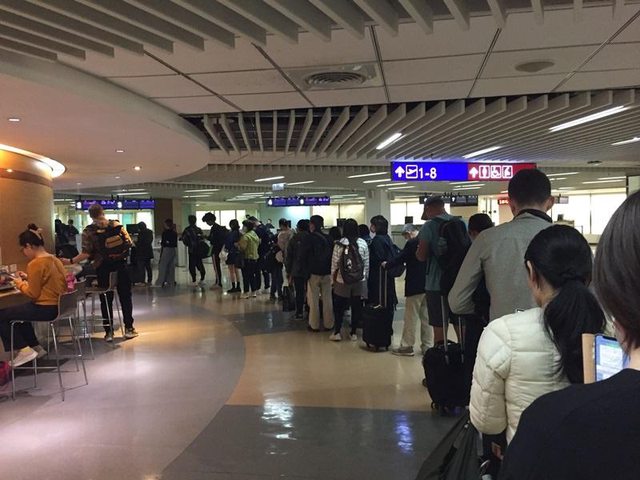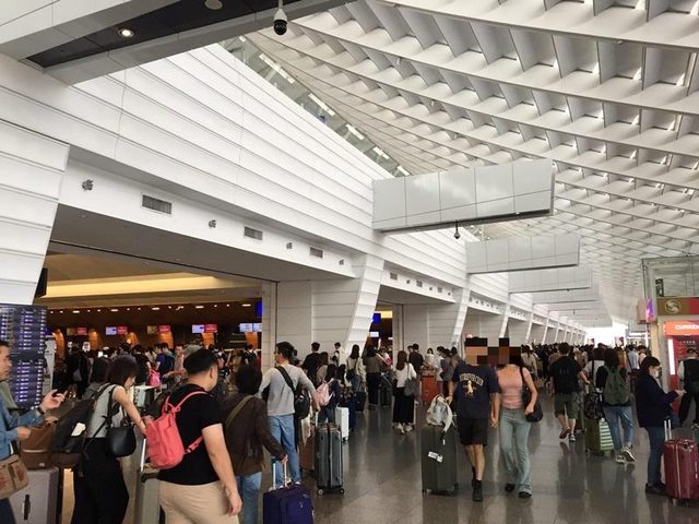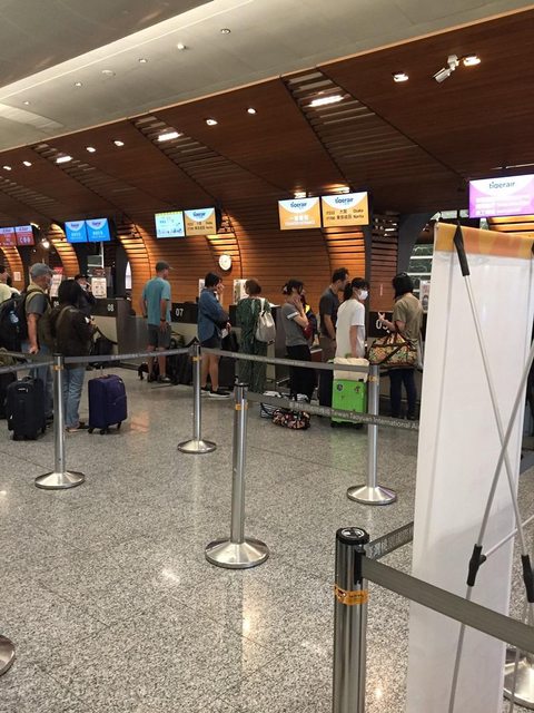 下午1點多機場人不少,虎航櫃檯前排起長長的人龍,