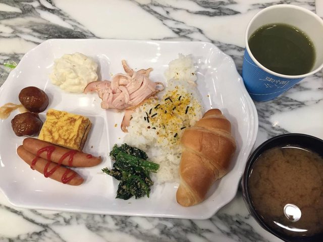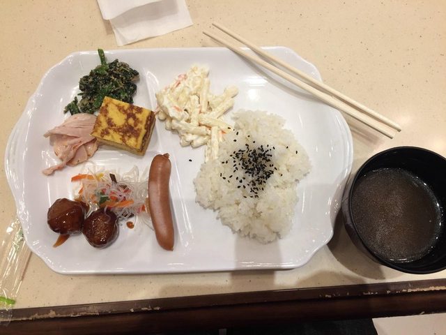 東橫INN的早餐,這間飯店的餐廳座位區很擁擠,最好錯開人多的時候。