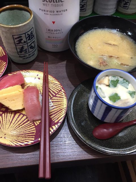 我吃了三盤壽司(還有一盤蝦子沒拍)、茶碗蒸跟味噌湯,